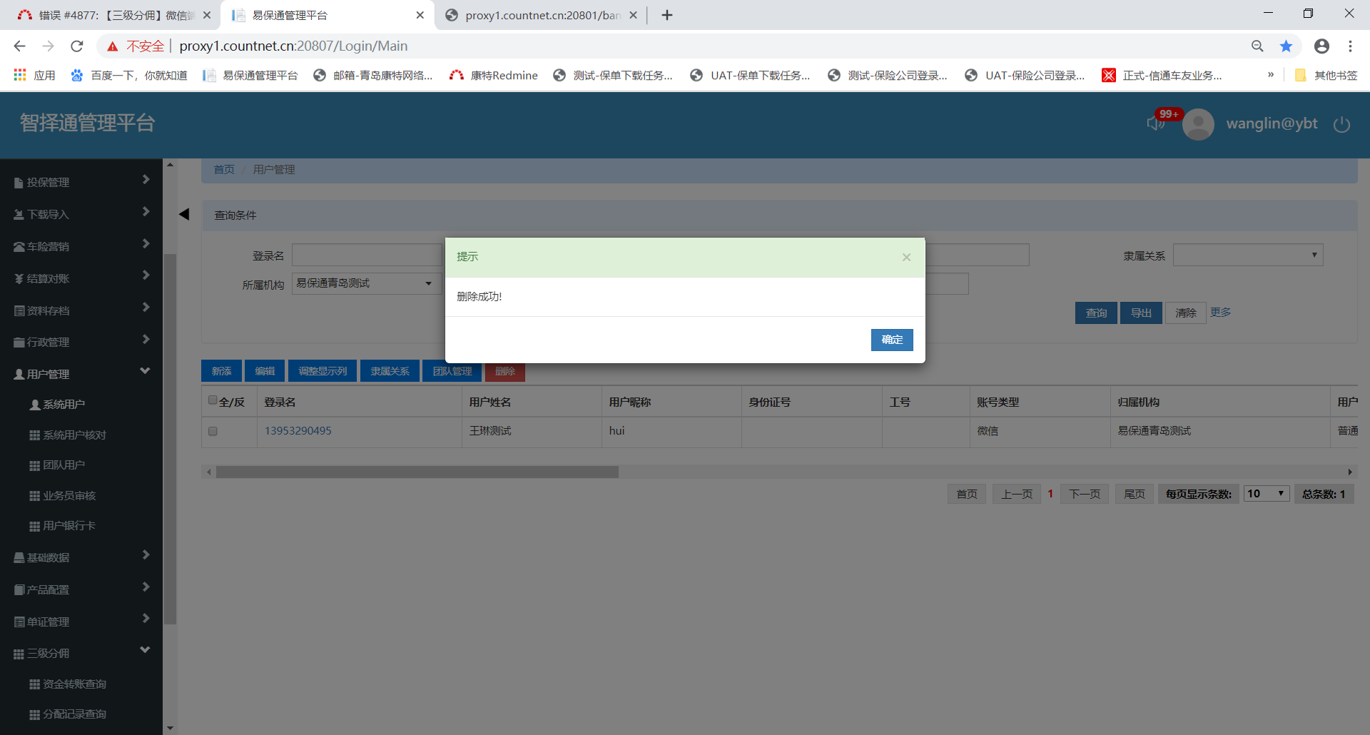 【用户管理】删除用户提示删除成功,实际上没删掉