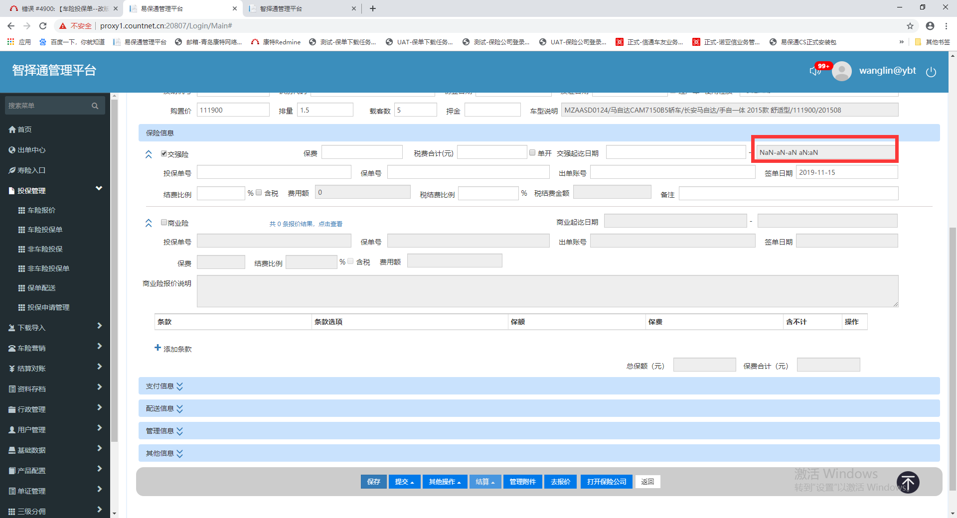 【车险投保单--改版】险种输入起保日期后会自动填入终保日期,删掉起保日期,终保日期显示有误,见图