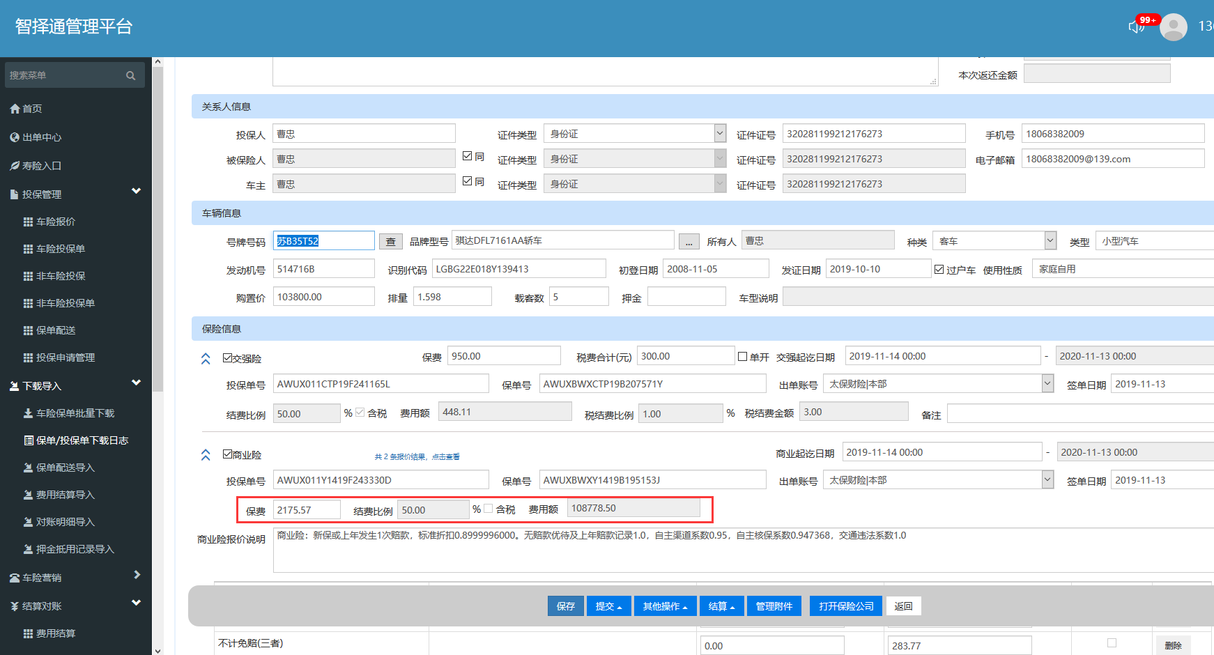 易保通-核心服务 - 优化 #3946: 【出单中心2.0】人保电销系统优化