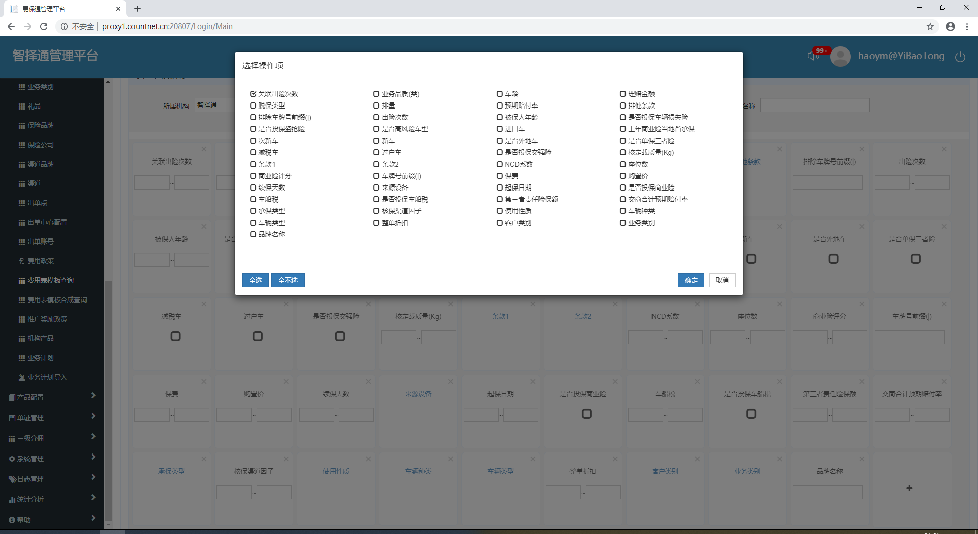 【费用模板】费用表模板查询,新添模板全选操作项,再次点+号只选择几项,点确定仍然显示全部操作项