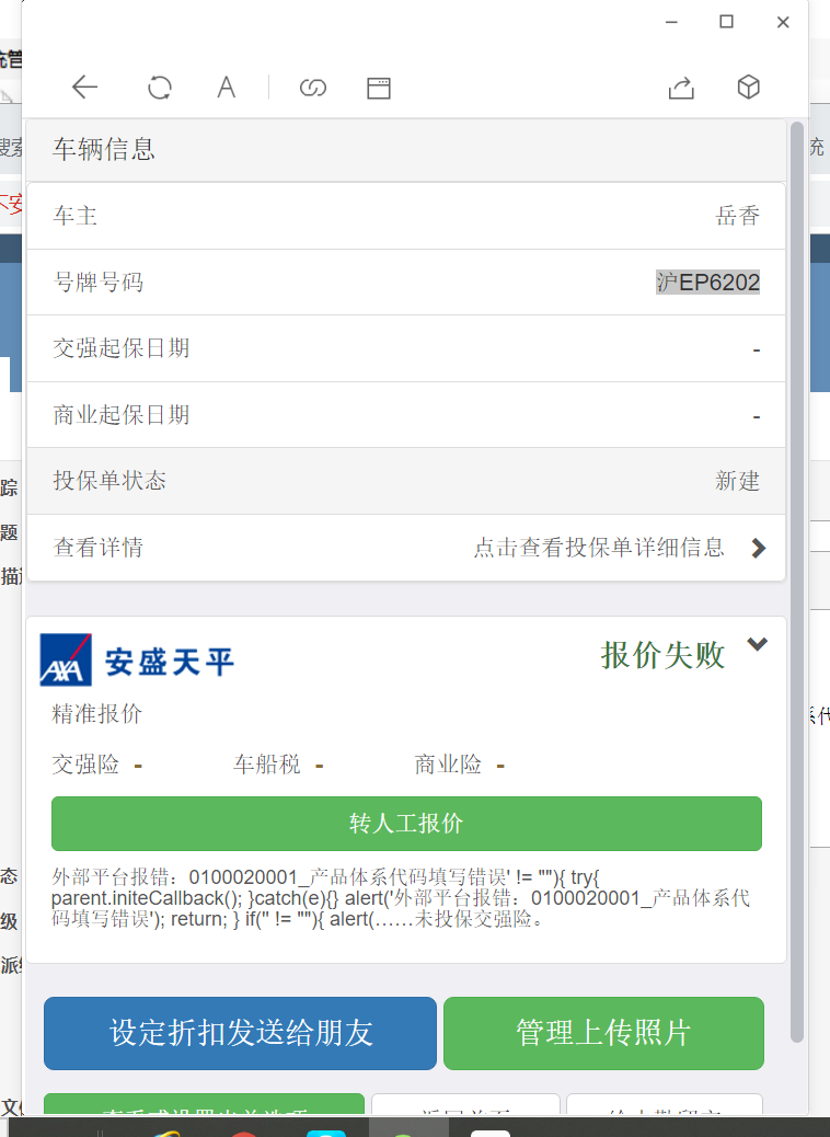 描述:以上机构属于上海地区,测试配置的安盛天平报价时系统报价失败提示“产品体系代码填写错误' ”,请处理此问题。
