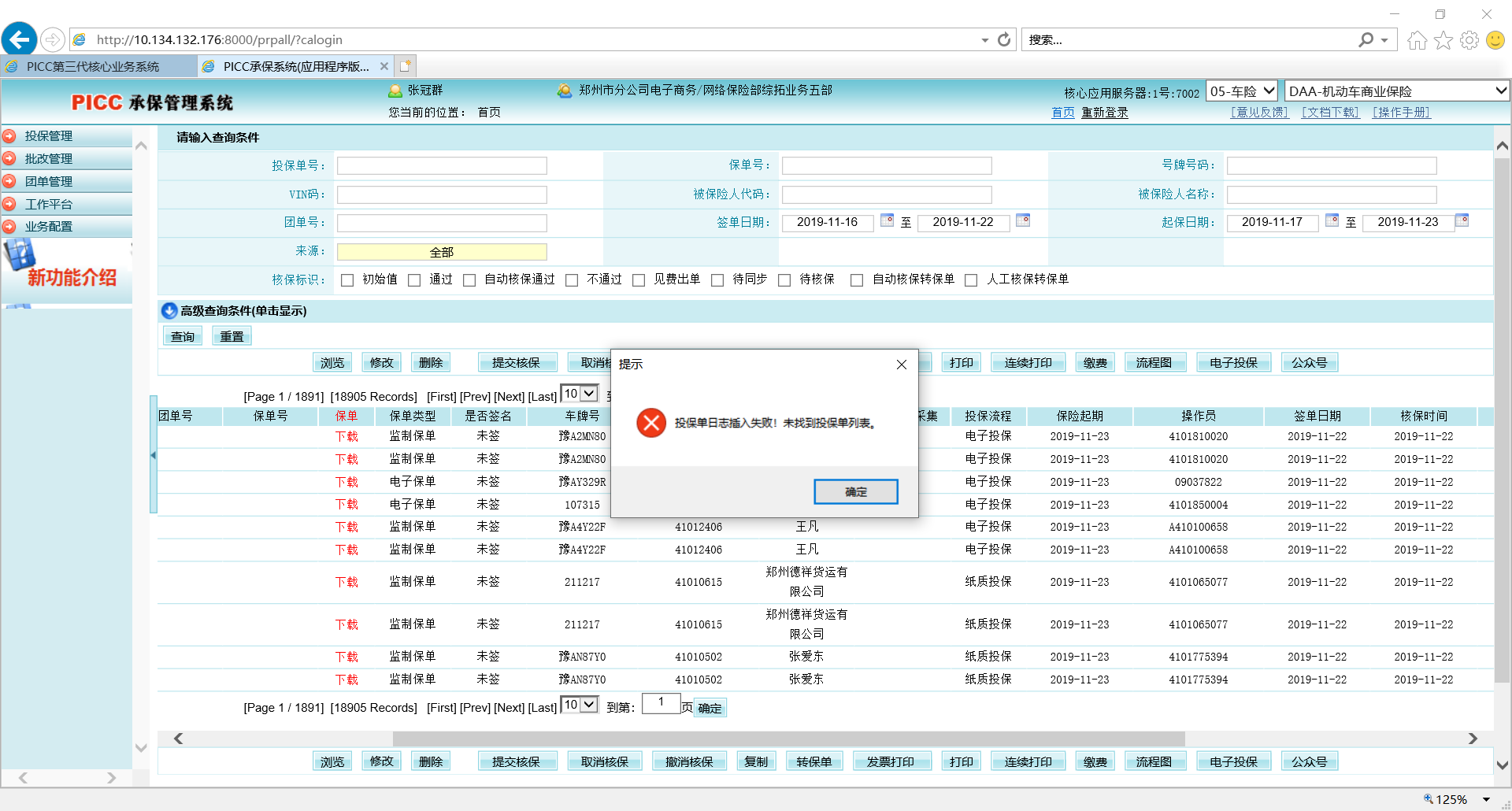【出单中心2.0-人保三代】下载投保单,提示无法找到投保单列表,见附图
