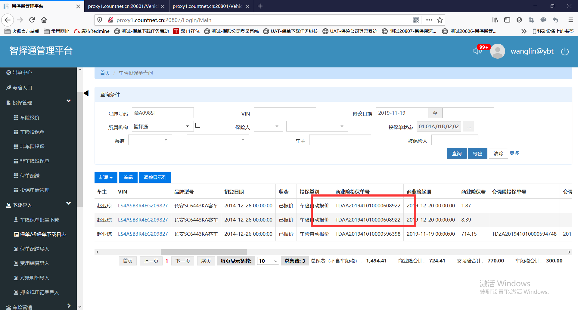 【出单中心2.0-人保三代】去报价->新建,在保险公司内报价成功并下载投保单成功。此时修改条款重新报价再次下载。下载后会管理系统会新增一条