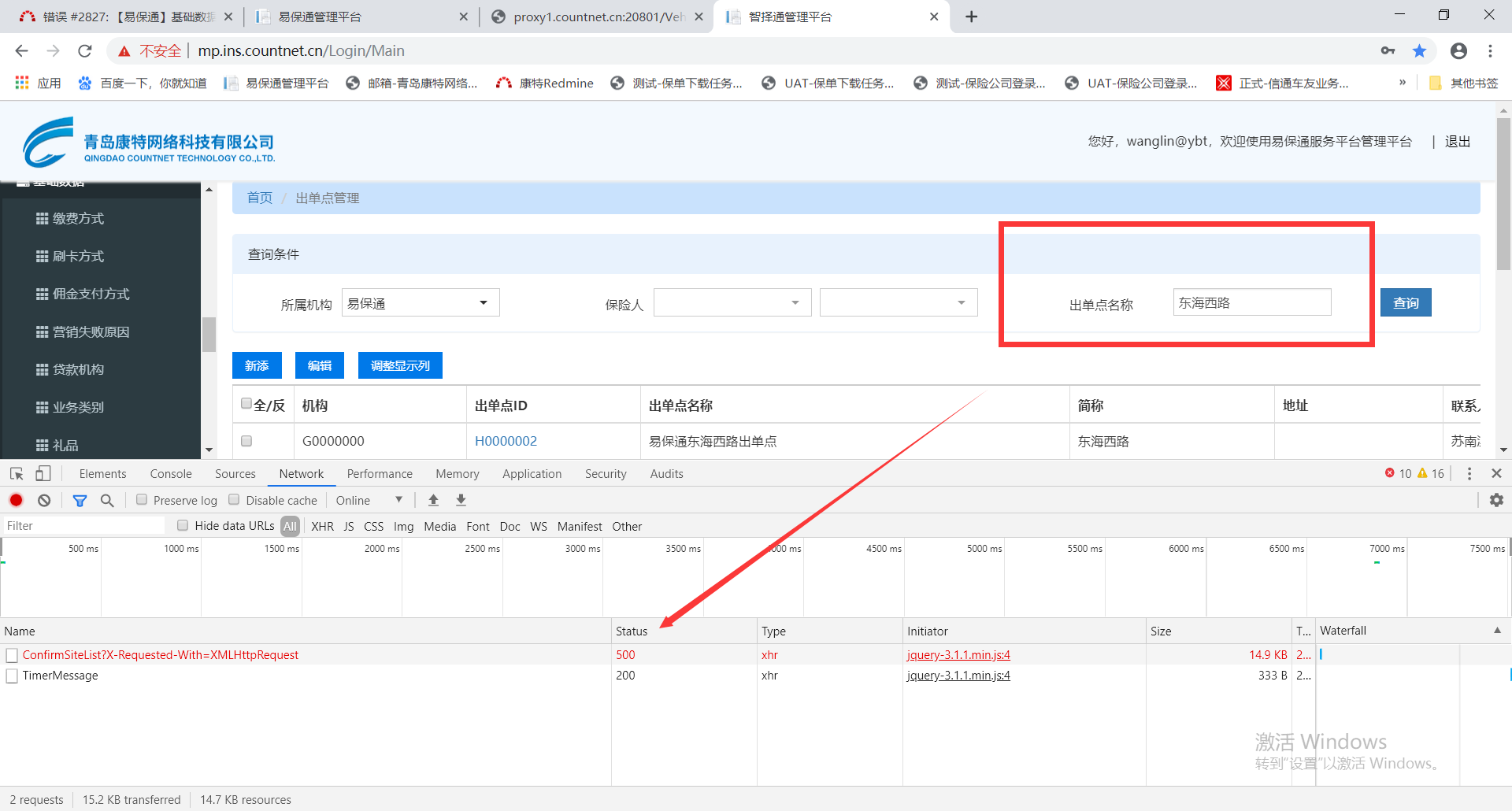 【出单点】按照出单点名称查询报错500