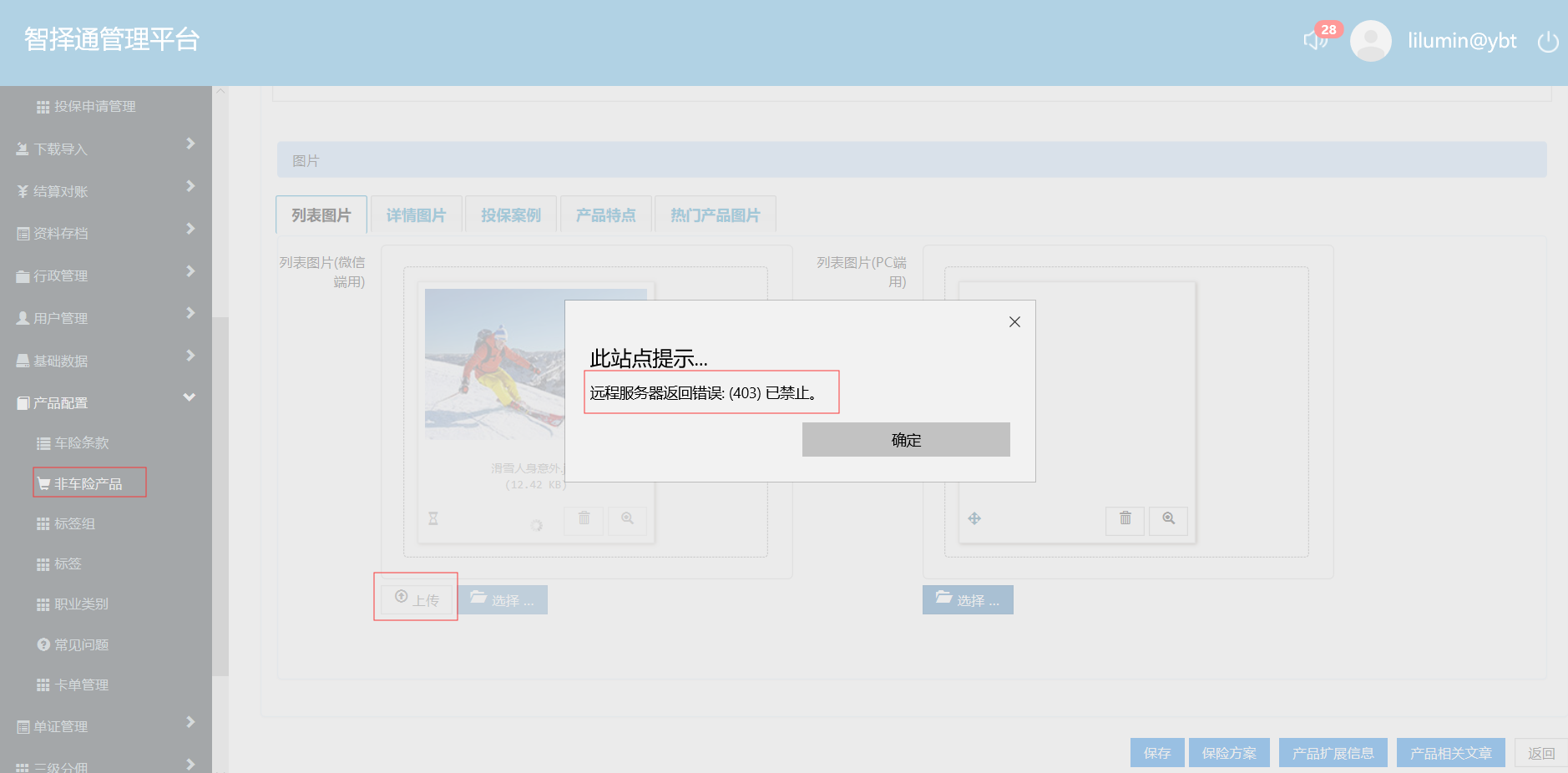 非车险产品-选择产品上传列表图片,点击上传提示远程服务器返回错误