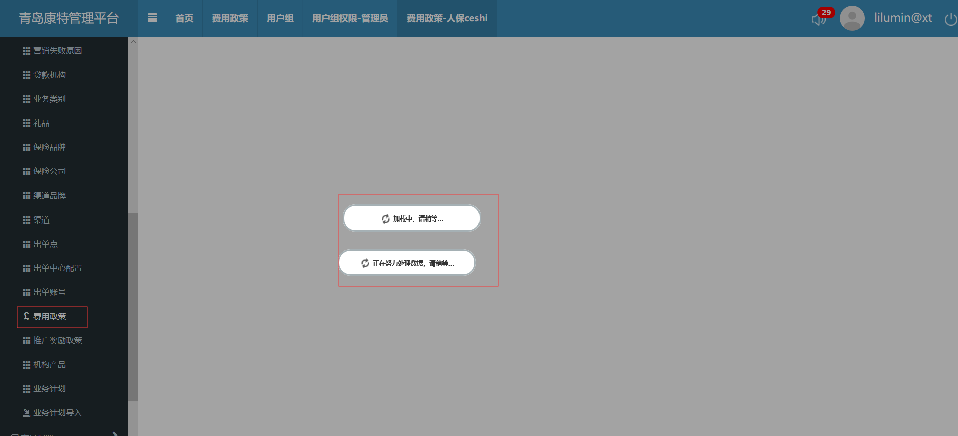 费用政策,选择一条数据进行编辑,显示两个缓冲加载