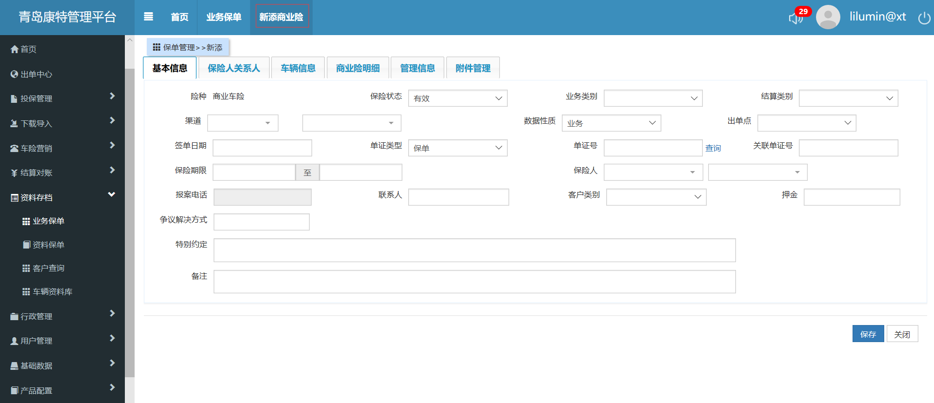 业务保单,新添商业险信息保存成功后,页面信息被清空