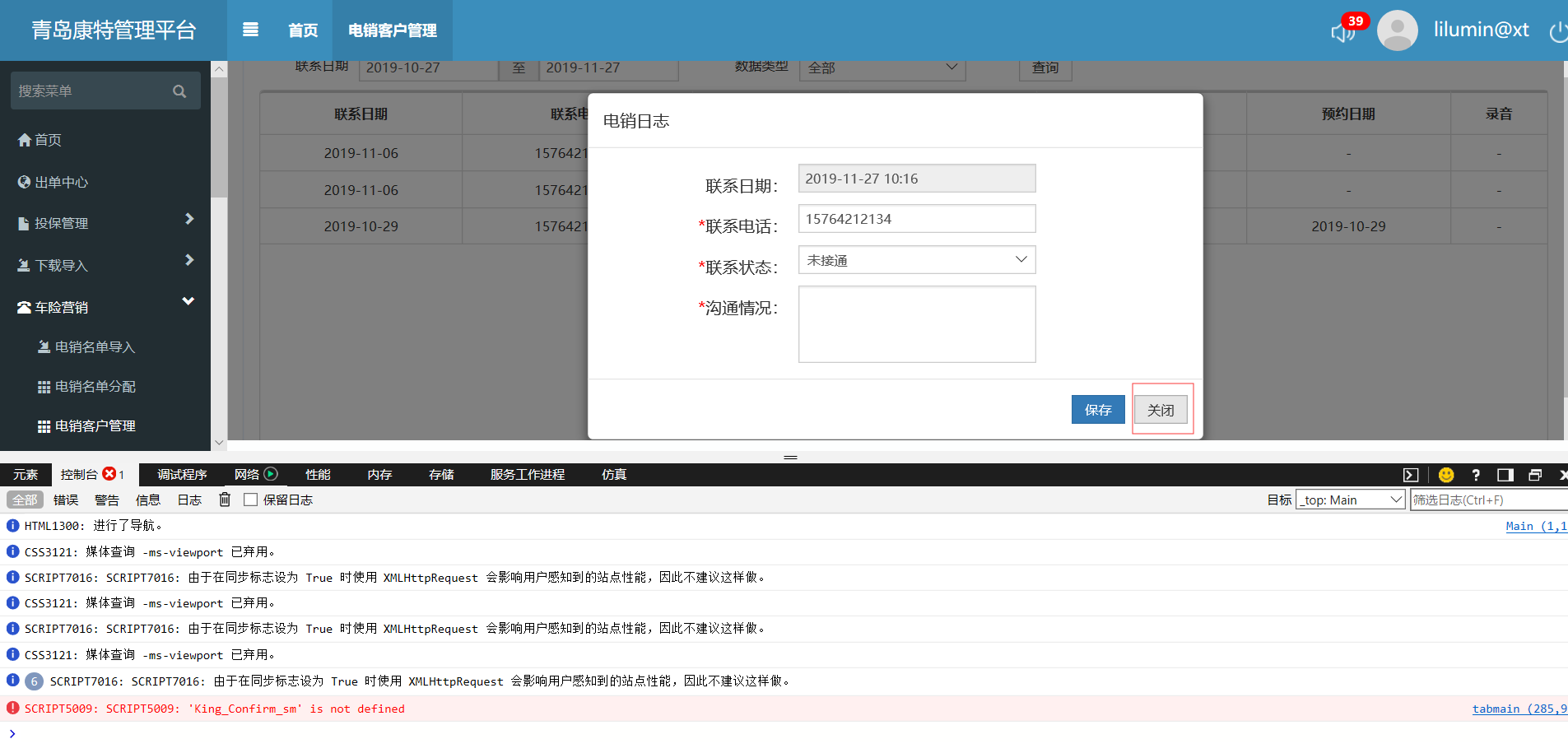 电销客户管理编辑界面,添加日志时直接点击关闭F12报错