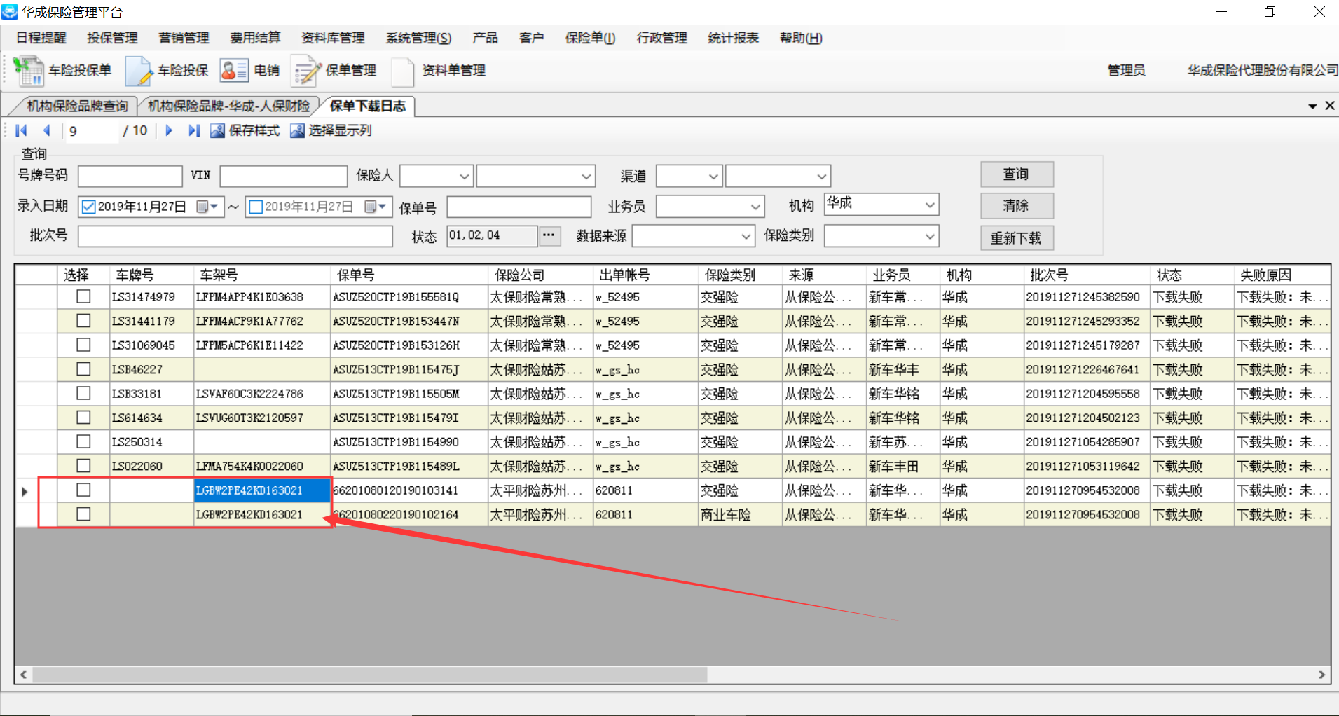 描述:上述车为太平财险保单数据,保单下载日志中系统显示下载失败,失败原因为“下载失败:未找到保单详情。原因:保单详情查询出错:该字符串未被识别为有效的 DateTime。”