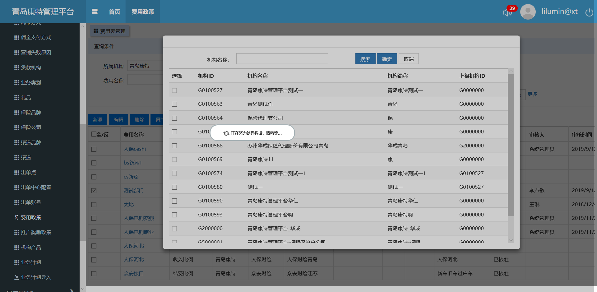费用政策,选择一条数据整套下发,一直在缓冲界面