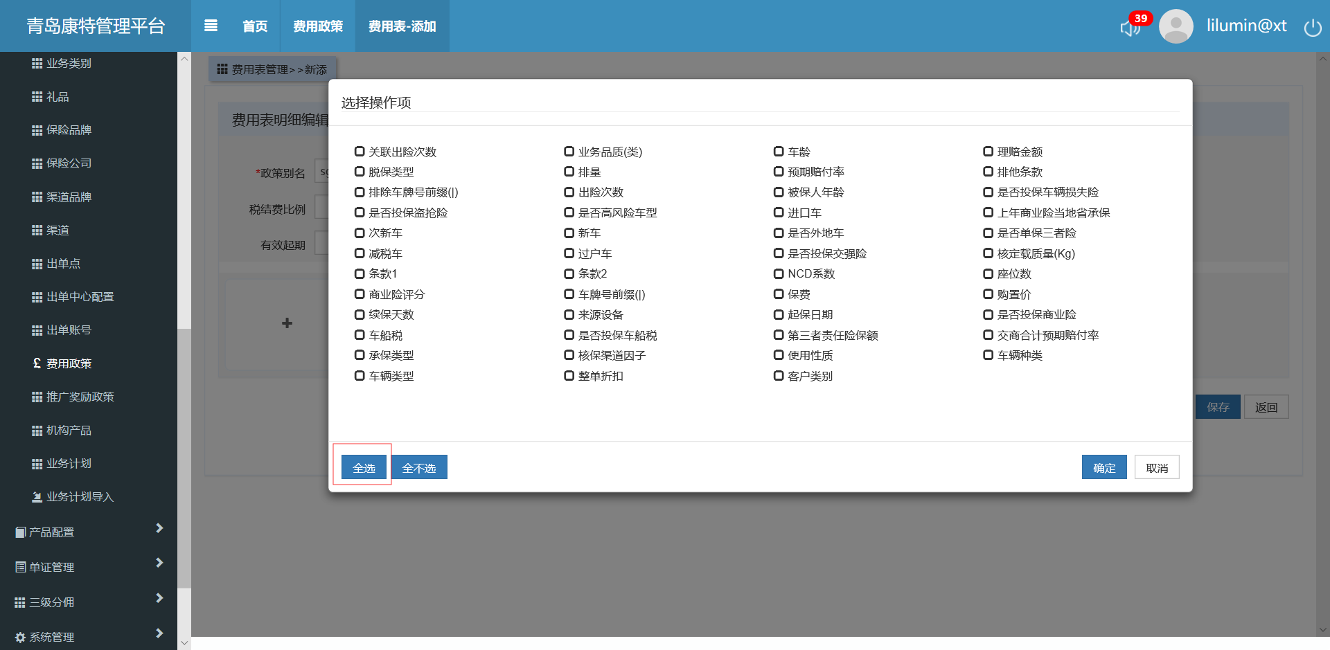 费用政策,新添费用表编辑费用表明细,点击全选无作用,F12报错
