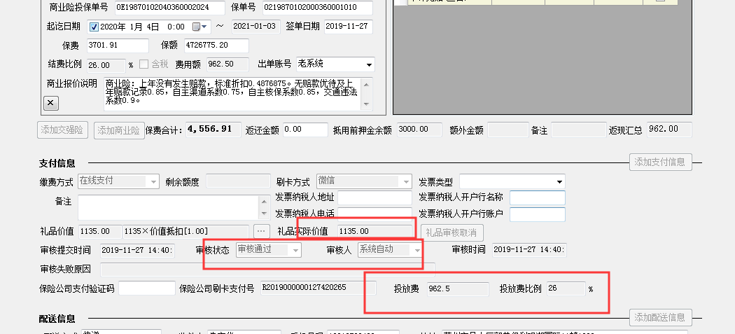 描述:上述车礼品实际价值为1135,业务员投放费为:962.5,礼品状态却显示为审核通过,审核人为“系统自动”,详情如附件所示。
