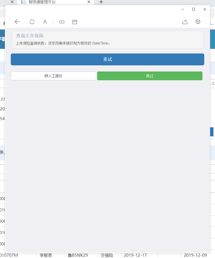 【泰山API】报价时,到查询上年保险的时候,查询失败,提示该字符串未被识别为有效的 DateTime。