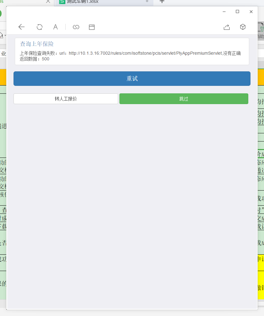 【泰山API】查询上年保险信息时报错提示:上年保险查询失败:url:http://10.1.3.16:7002/rules/com/isoftstone/pcis/servlet/PlyAppPremiumServlet,没有正确返回数据:500