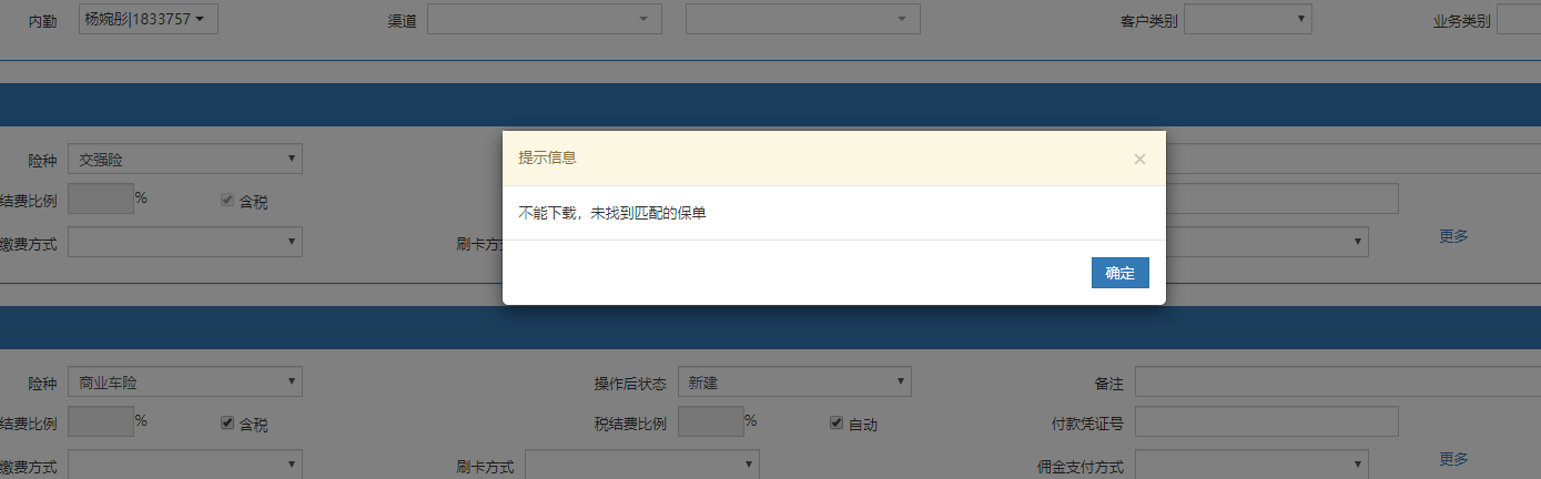 当前没有找到保单的提示需要更改为“下载失败,没有找到保单,请确认渠道与是否在核心系统生成保单。”