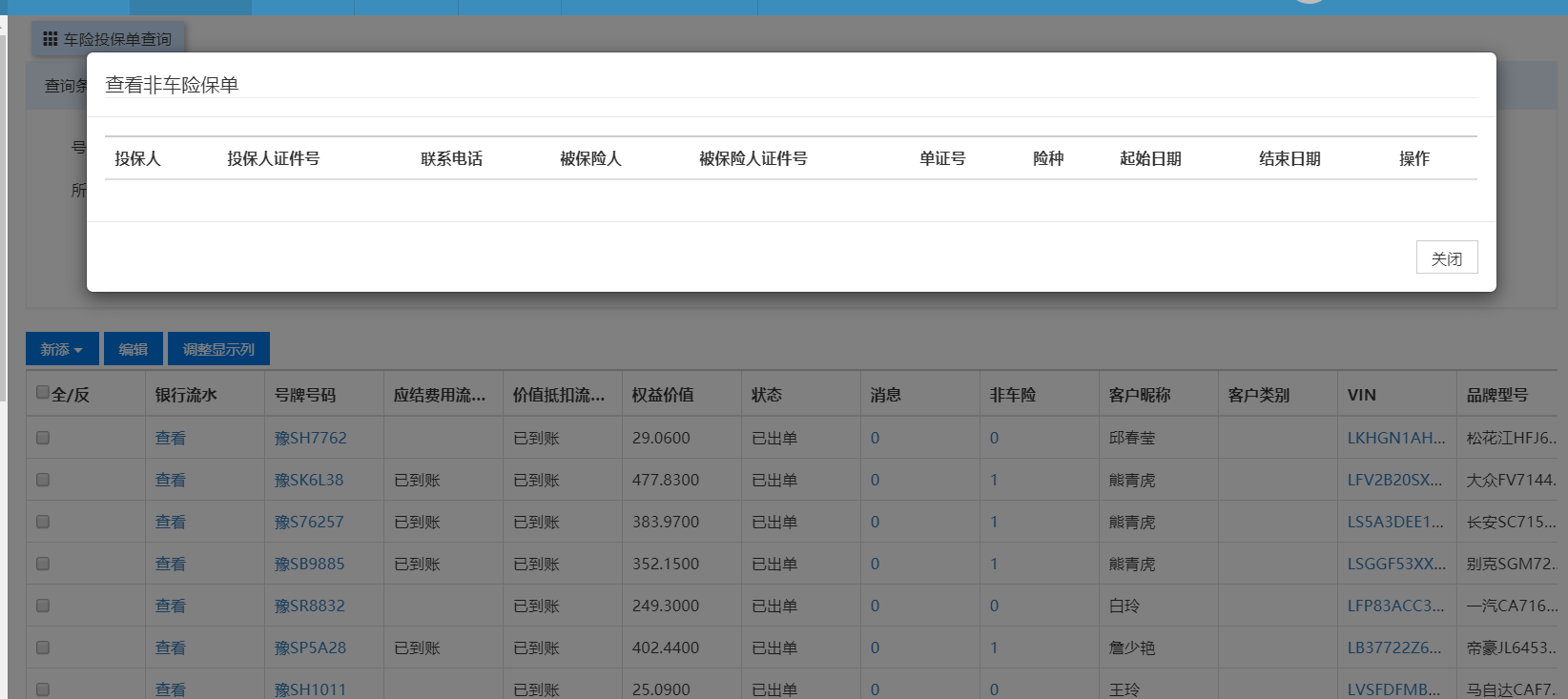 【人保信阳】车险投保单查询页面,非车险保单点击后无法正常关联