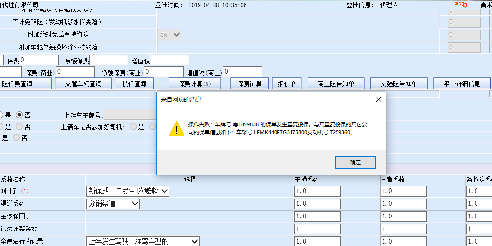 错误 #6588: 【广东携安】安盛天平报价失败,提示“已添加了具有相同的键的项”。