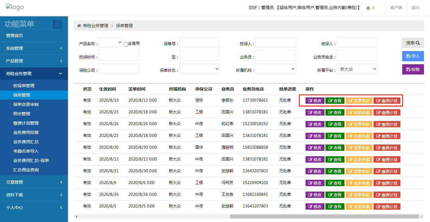 保单生成后非管理员不允许作废,详情见图: