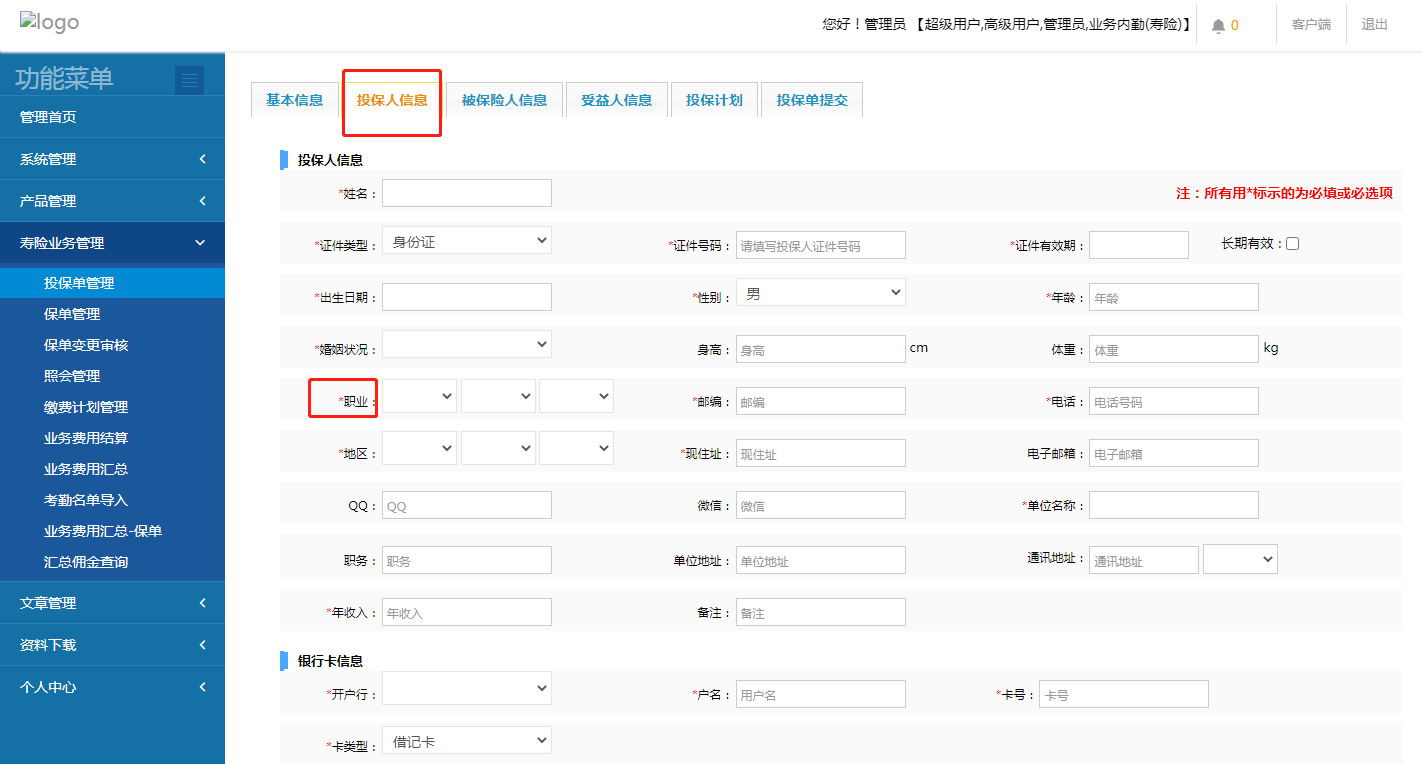 投保单管理-投保人信息-职业(职业修改为手动输入),详情见图: