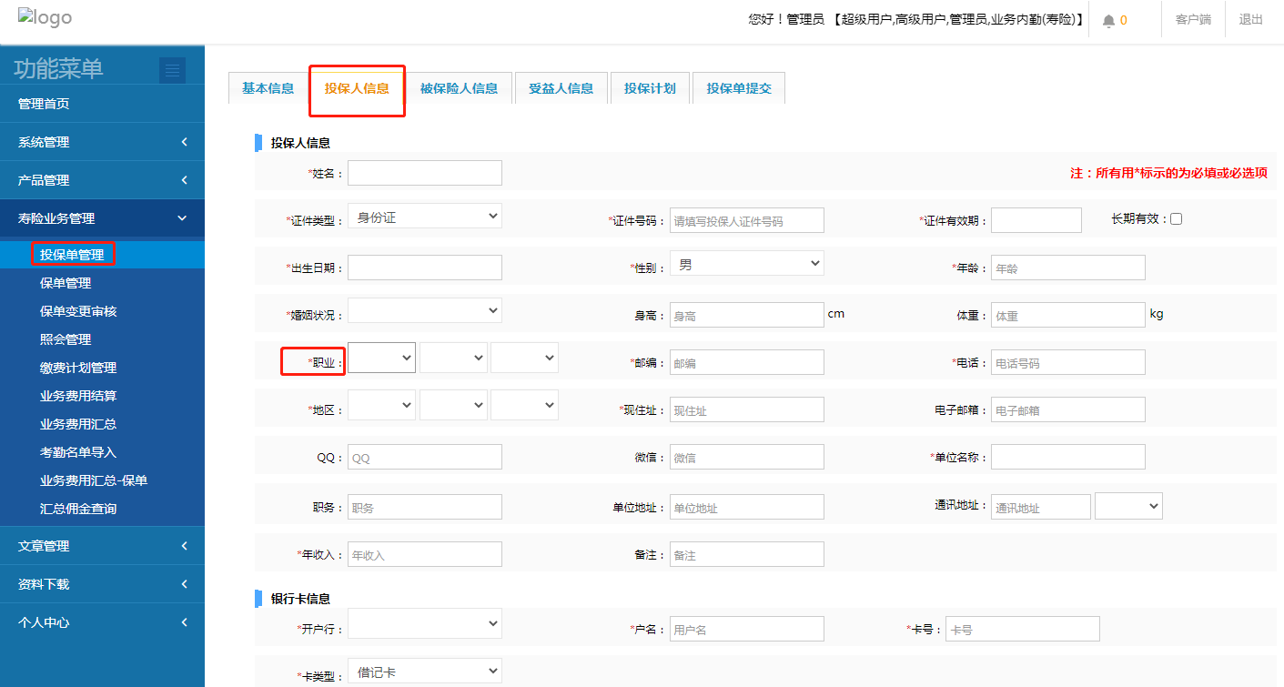 【新大众寿险】投保单管理的职业管理修改为非必填项