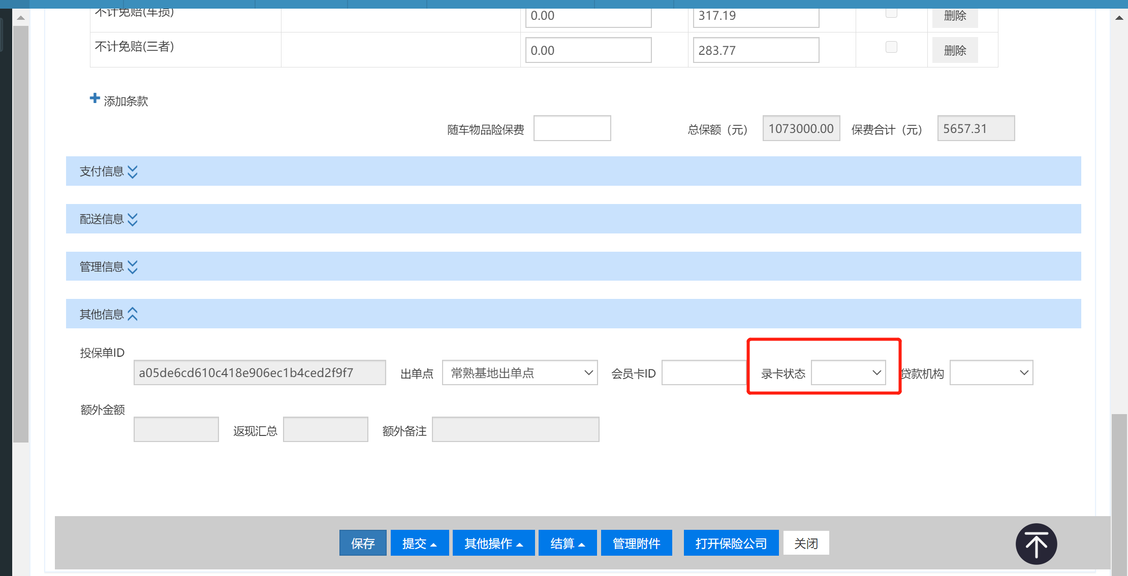 同时增加限制业务员在已出单以及以后状态的投保单中录卡状态不允许修改。