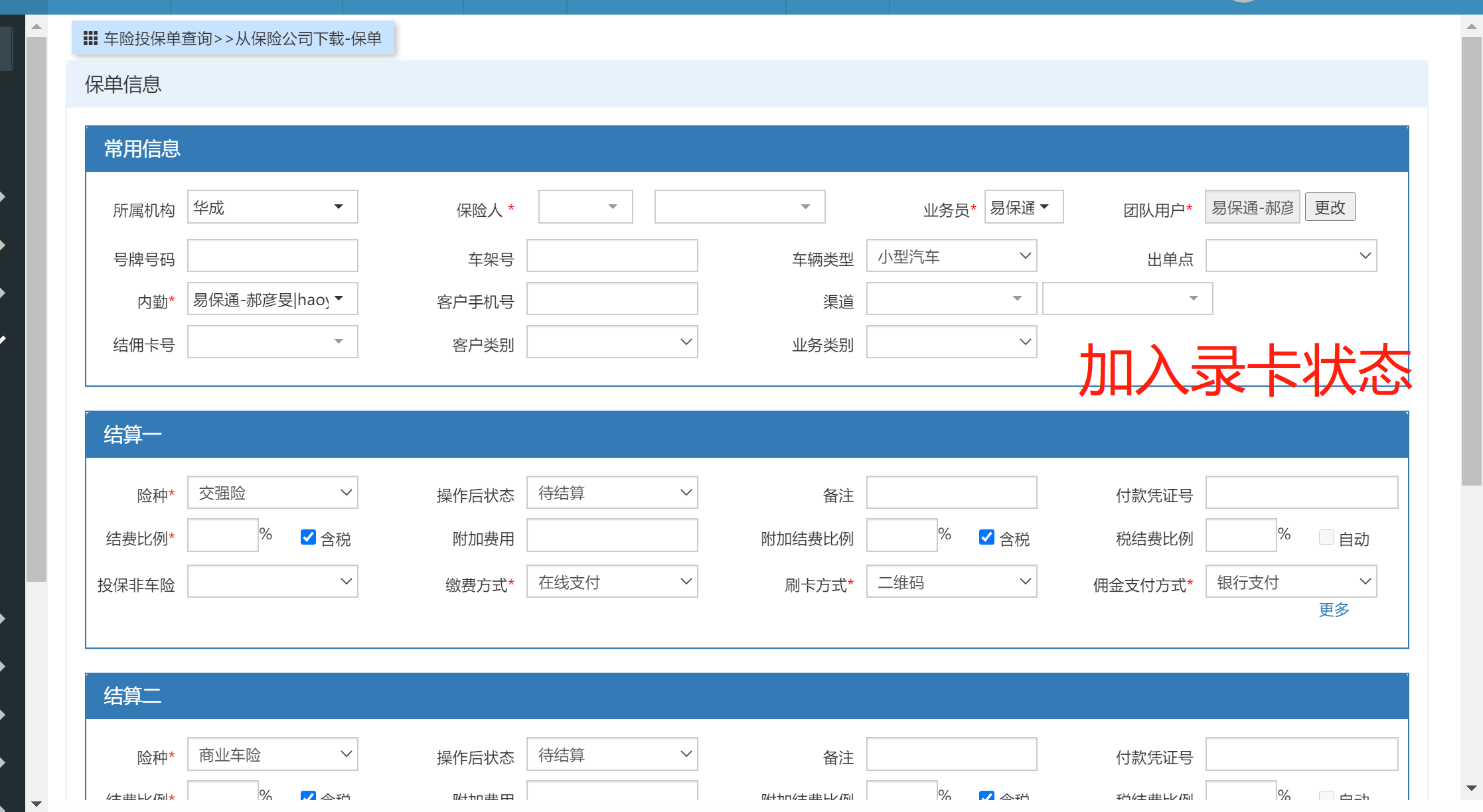 【华成】从保险公司下载保单的界面,常用信息增加“录卡状态”