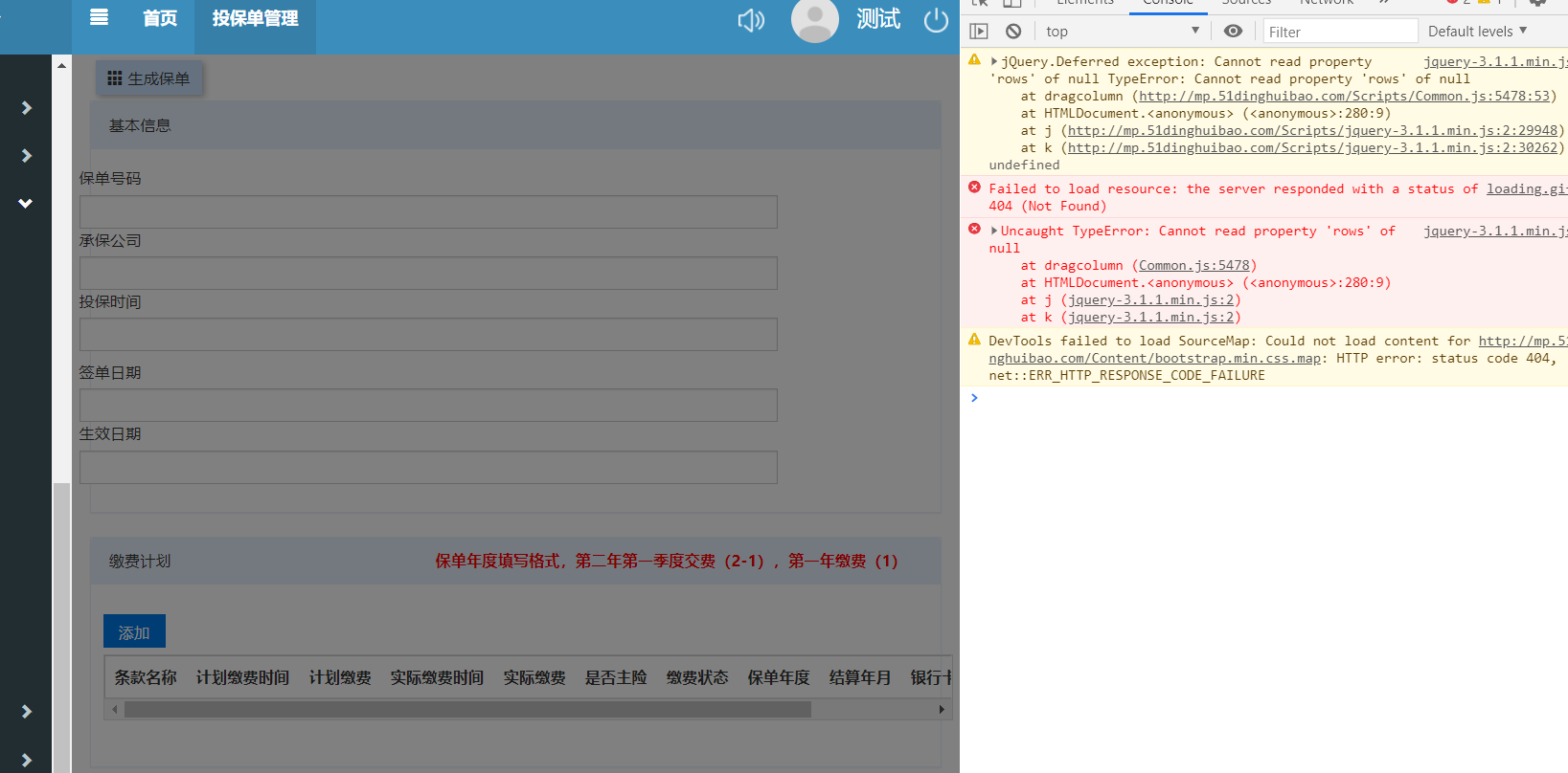 投保单提交到已出单状态报错,具体详情如图。