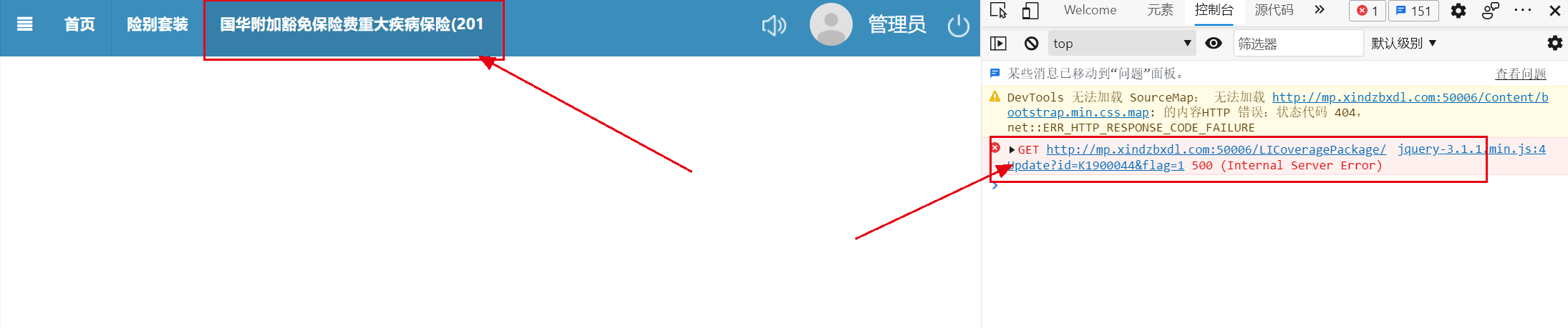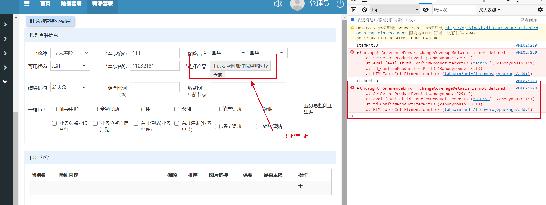新大众服务器 寿险业务管理→险别套餐→点击险种套餐后的编辑按钮,页面空白,报500错误详见附件