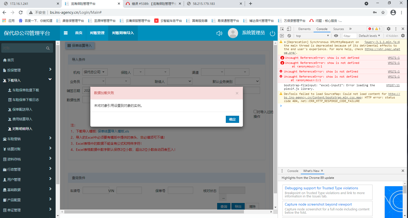 对账明细导入界面,使用系统下载模板,并未进行任何改动,导入时报错:未将对象引用设置到对象的实例。详情见截图