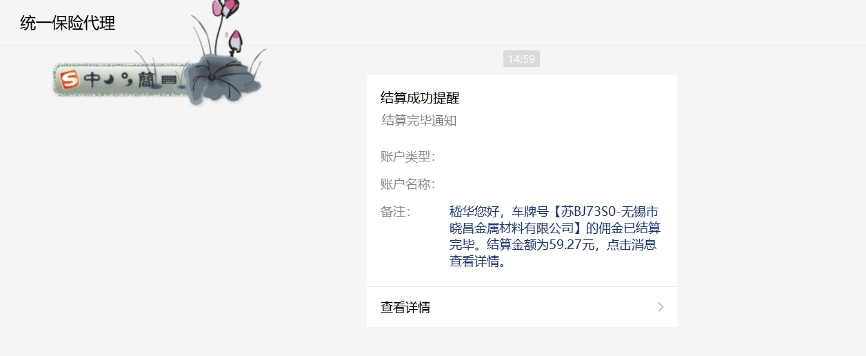 微信公众号推送的到账提醒不要含金额,只要通知结算完毕即可