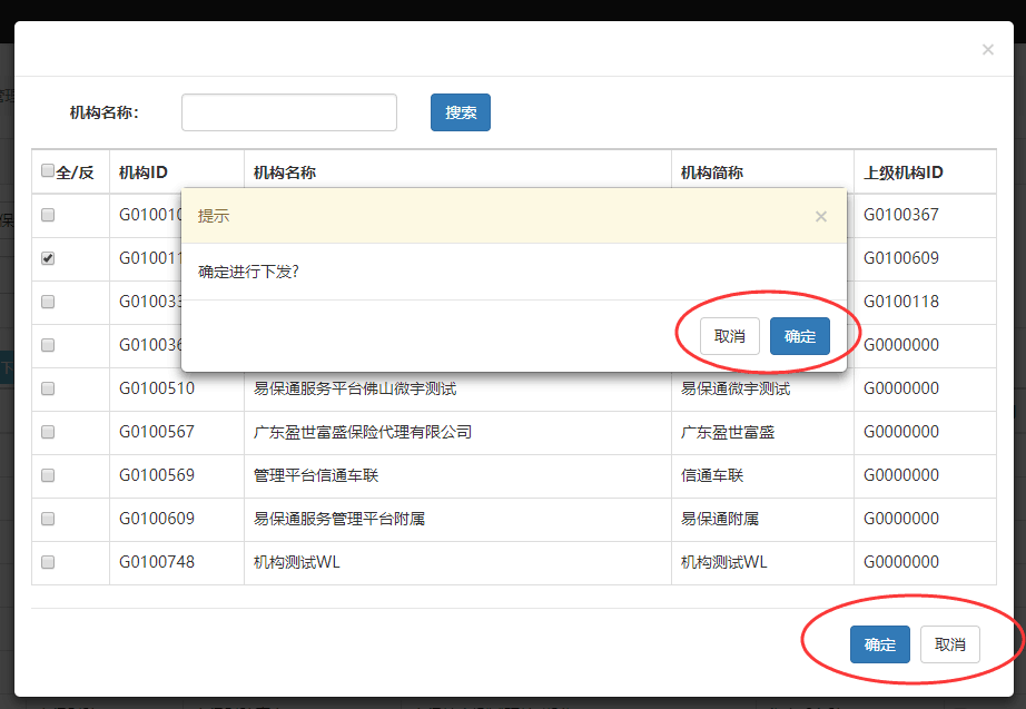 【速成高级版】机构保险品牌,下发选择机构页面的确定和取消按钮顺序需要统一