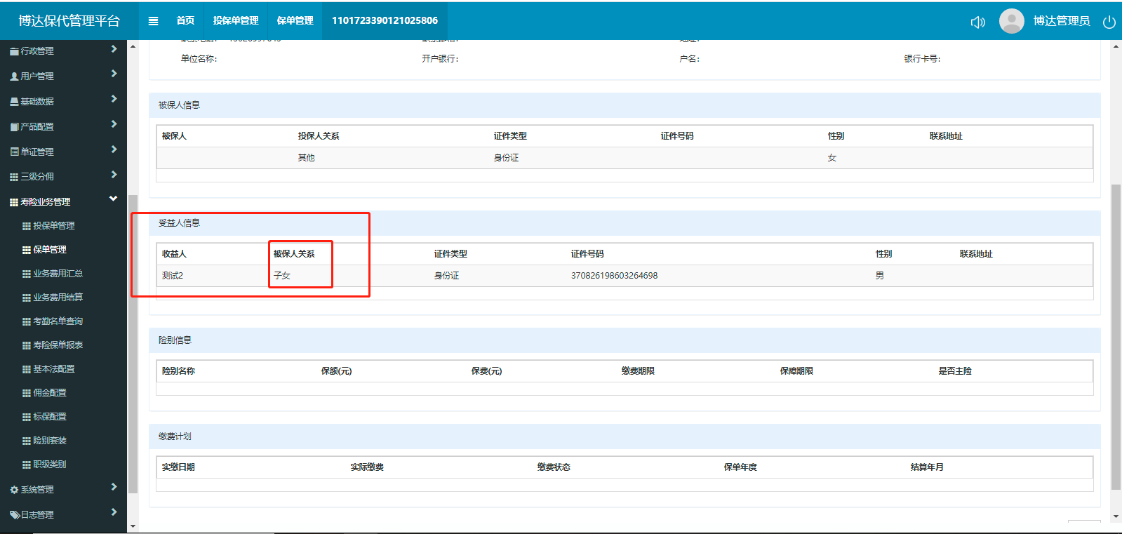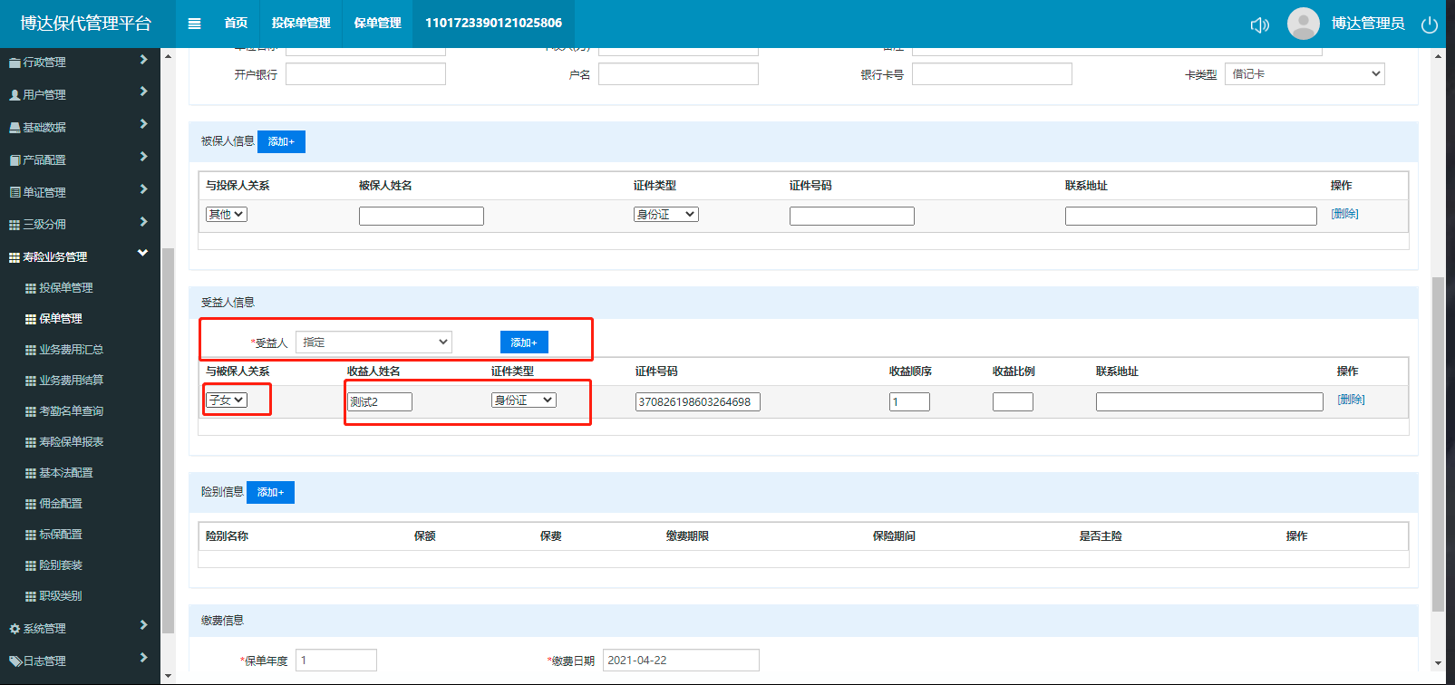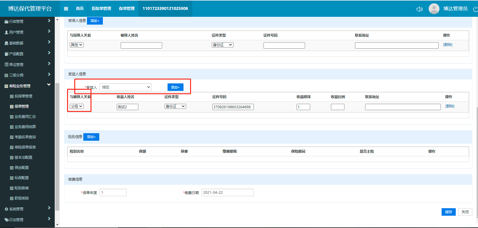 【博达保代】寿险业务→保单管理 编辑保单中【指定】受益人与被保险人的关系出现错误