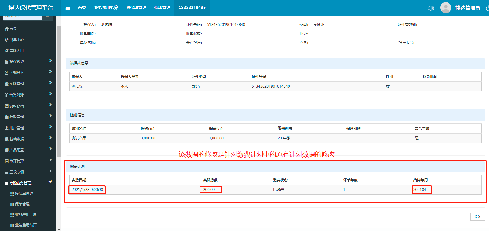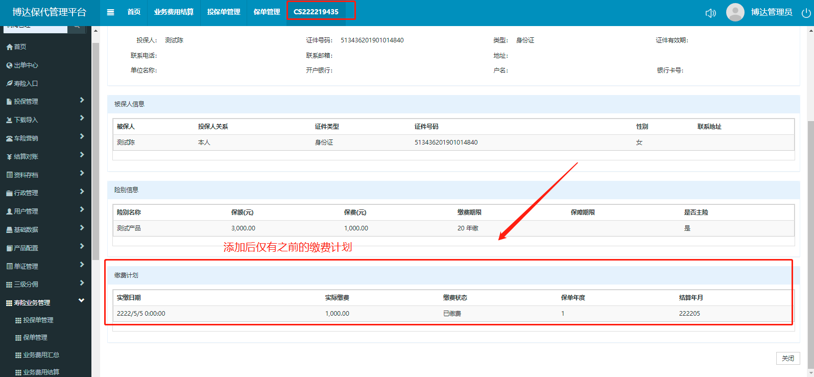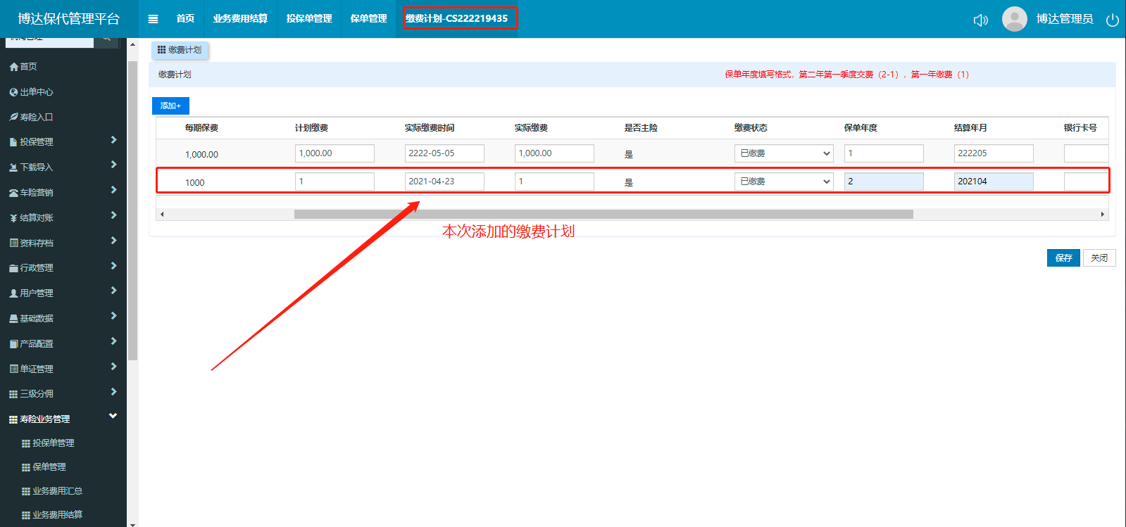 在保单管理中给已有保单添加缴费计划,正常添加只有,再次查看保单,显示的依旧是之前的缴费计划只有在缴费计划中,修改原有的缴费计划的数据才能被正常保存,新添的数据一律无法保存