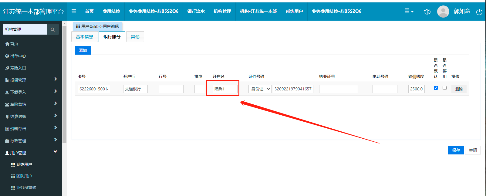 统一平台业务员的银行信息不完整,没有开户名,提交费用结算单到代支付后无法正常生成流水