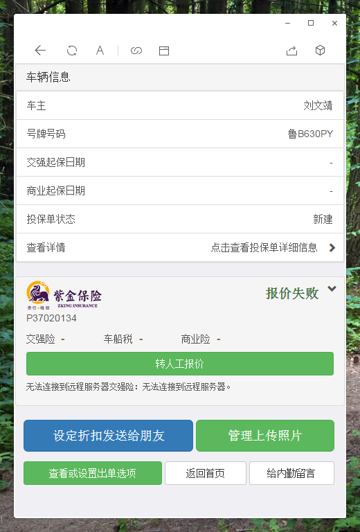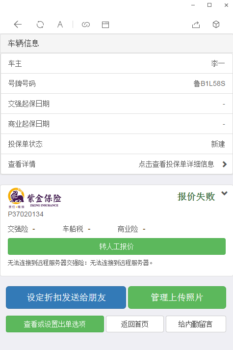 紫金报价提示“无法连接到远程服务器交强险:无法连接到远程服务器”,vpn链接是正常的,该账号可以扫描保单。