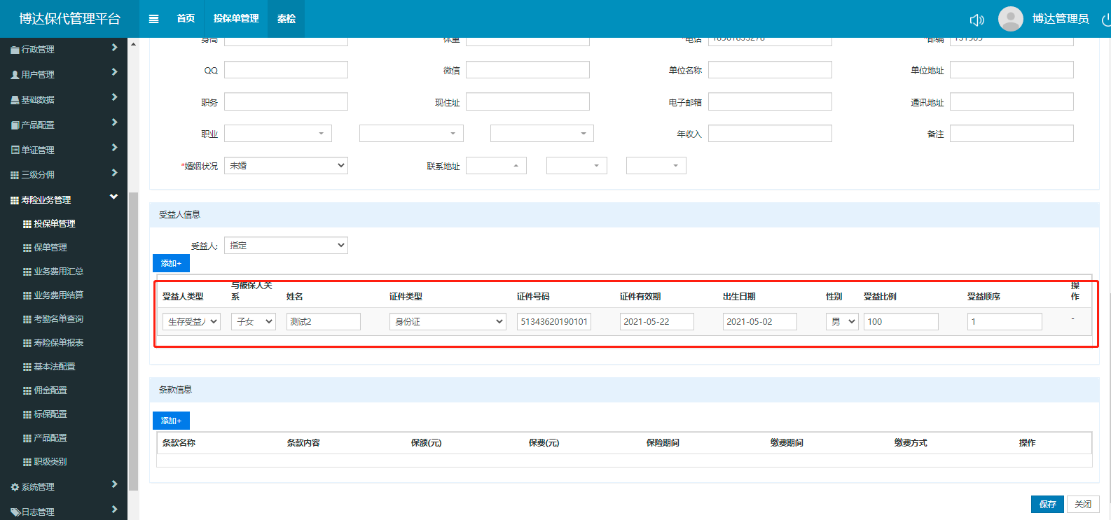 新寿险博达服务器中的寿险业务,新增投保单时选择指定受益人并填写信息,保存后查看投保单信息发现受益人信息出现错行,并且出现乱码详情见截图