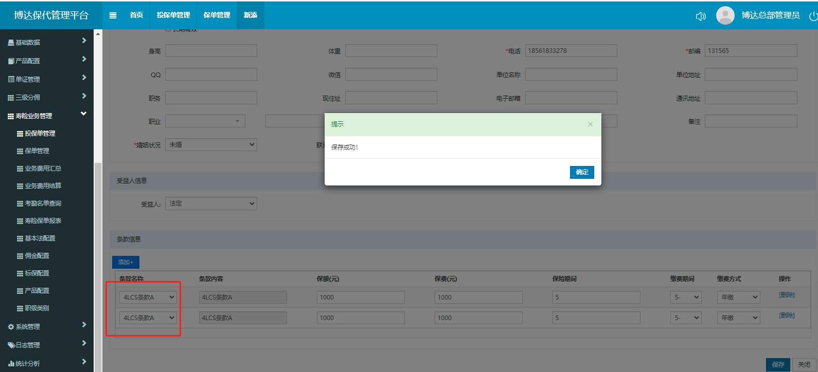 新增投保单同事存在两条及以上主险保存成功,此处不应该被正常保存,只允许存在一条主险详情见截图