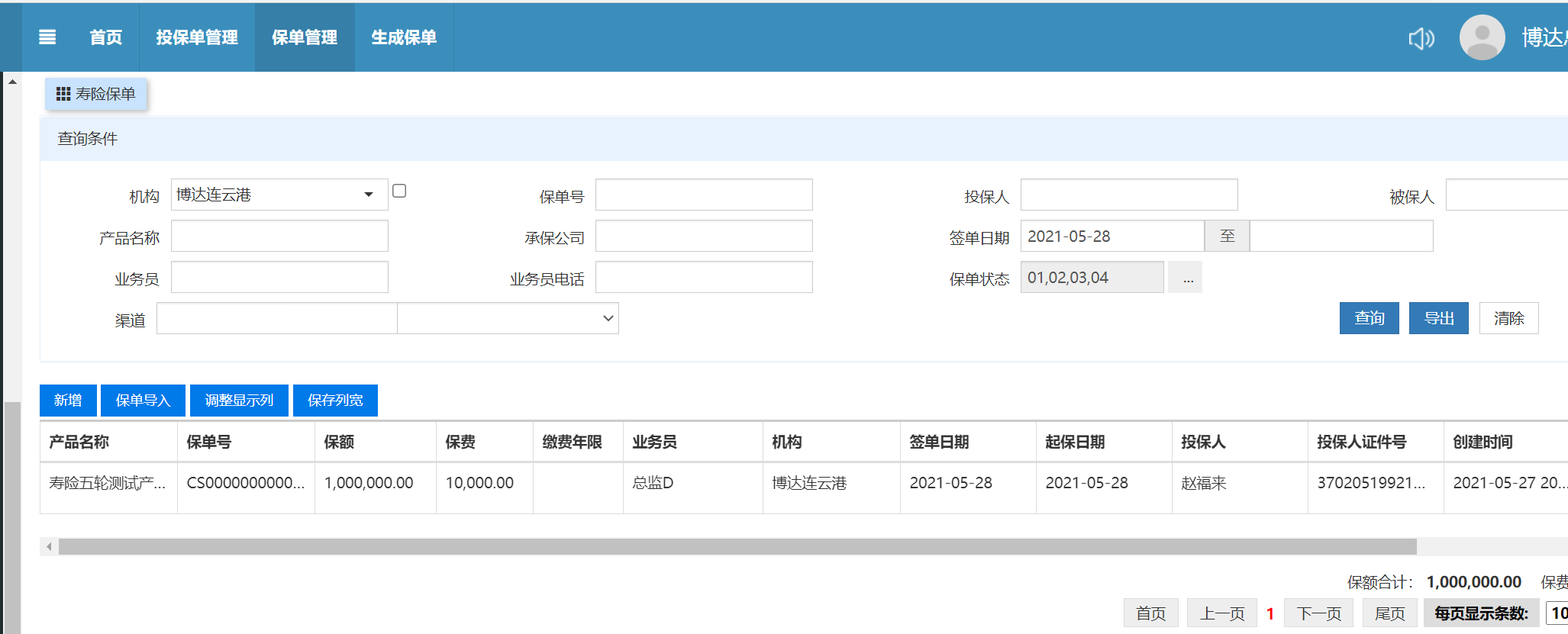 投保单提交到已出单之后跳转的保单查询页面不正确,如图所示。修改逻辑为:提交投保单到已出单后,填写缴费计划点击保存后,跳转到投保单查询页面,如果已经查询到数据的第二页,则继续展示第二页的数据。