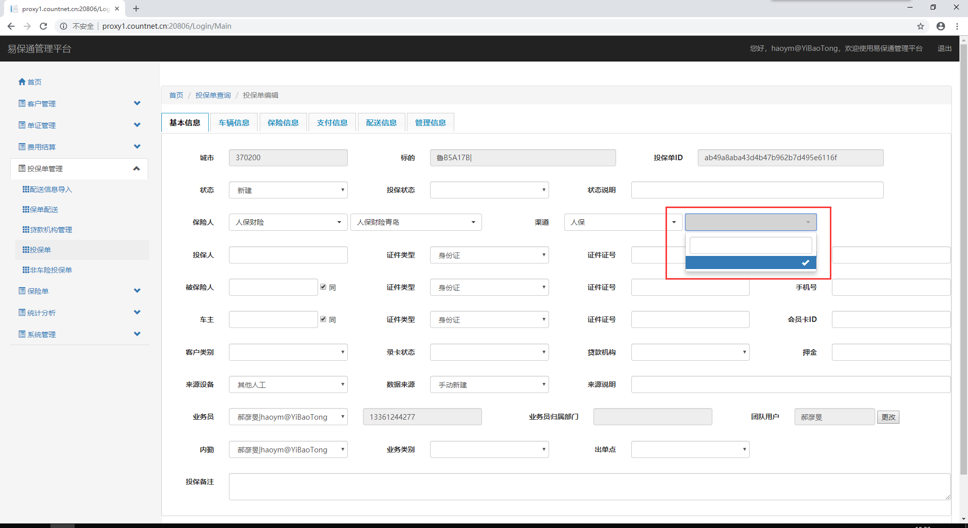 【速成高级版】投保单编辑页面,渠道下拉列表没有显示可选项