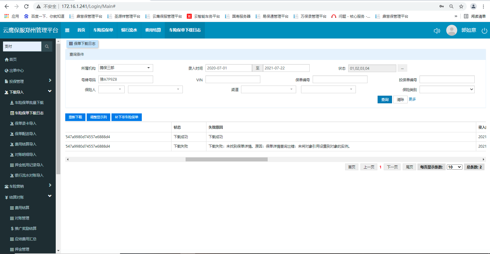 郑州服务器腾保三部,车牌号:豫A7P9Z8商业车险下载失败,失败原因:下载失败:未找到保单详情。原因:保单详情查询出错:未将对象引用设置到对象的实例。
