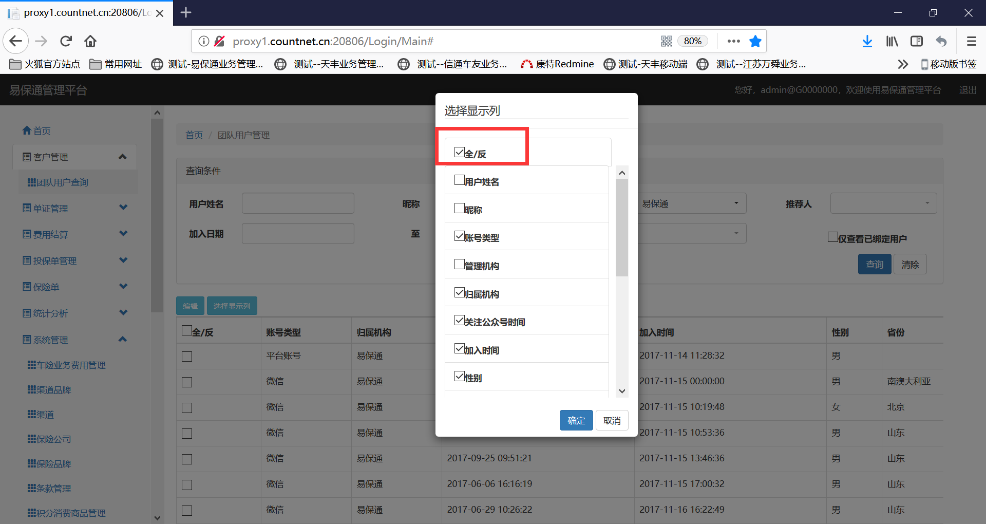 点击全/反选复选框无效果,不能全选显示列