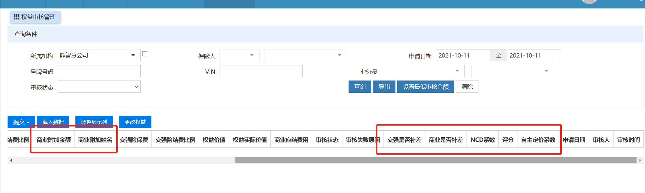 权益审核页面,增加字段,如图所示