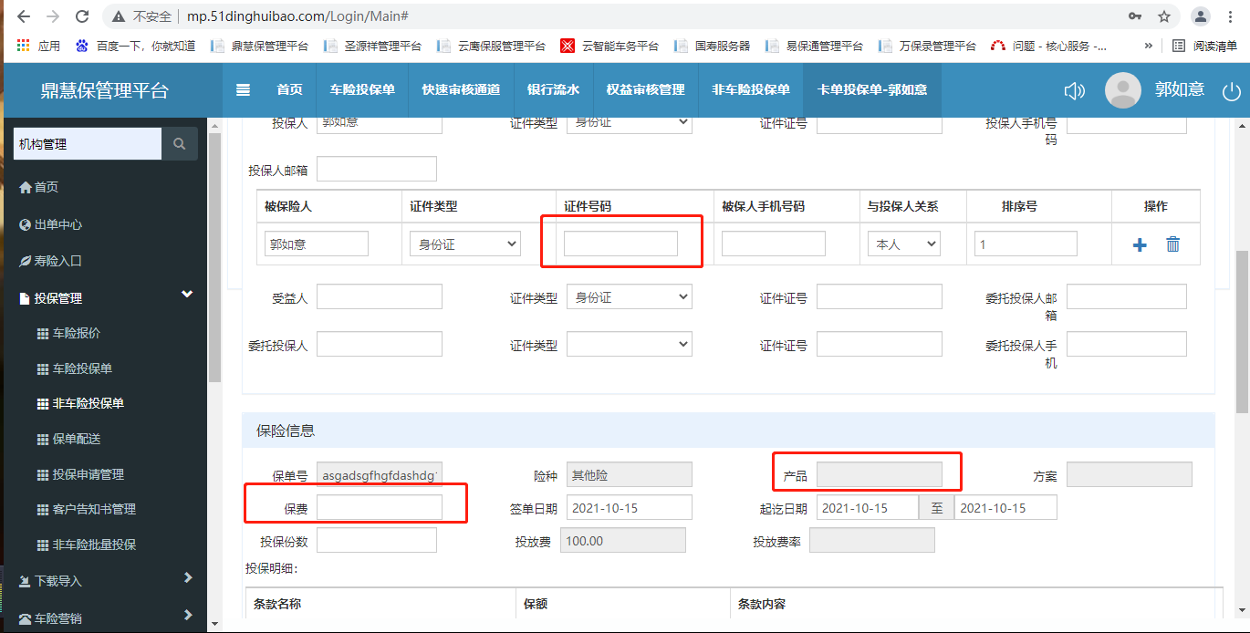 鼎智云鹰分机构通过快速审核通道提交的非车险投保单,没有进行数据的展示,没有关于快速审核界面的展示