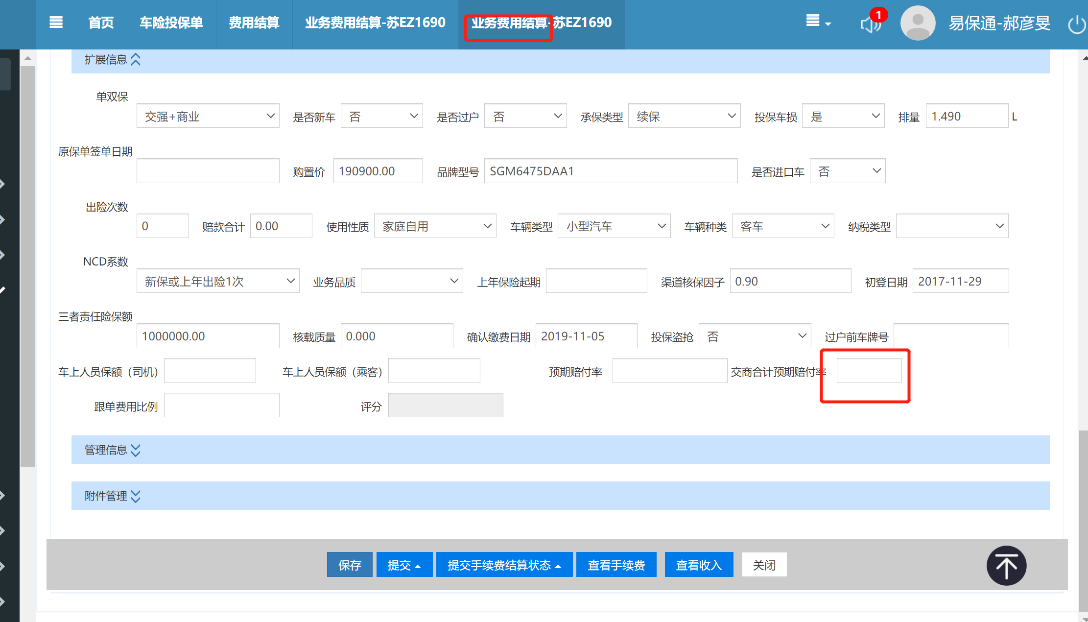 目前太保保险公司系统系统中有交商合计赔付率,需要在下载保单时将此赔付率下载并保存到投保单、保单和结算单中的交商合计赔付率,并在结算单扩展信息页面展示。