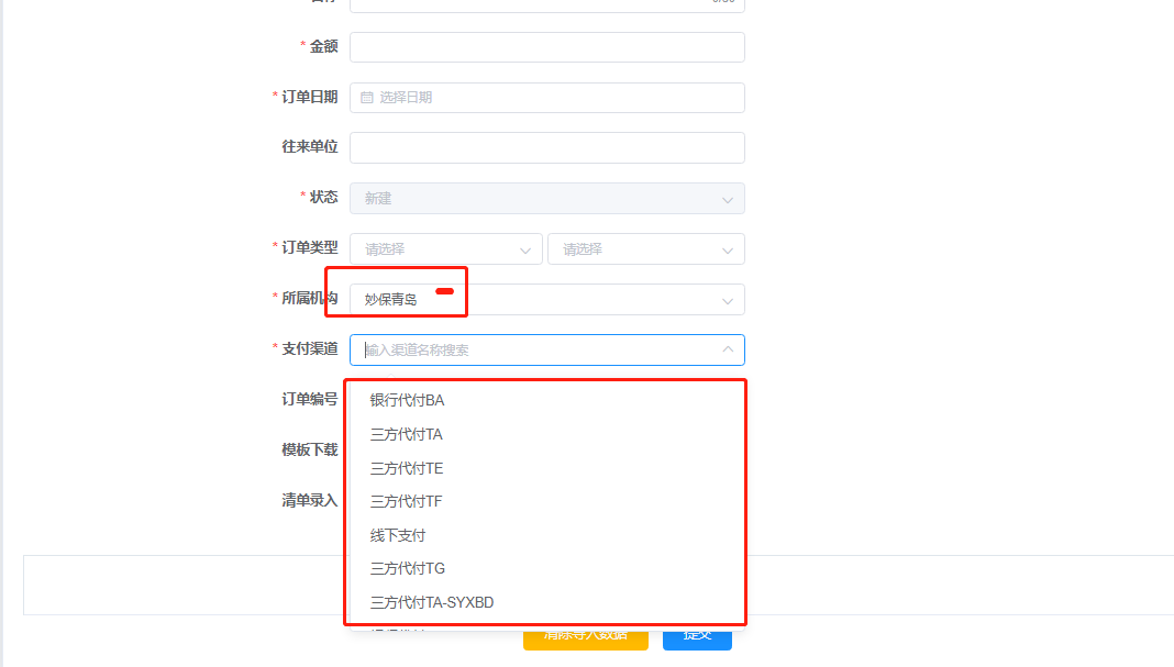 订单系统导入数据时选择支付渠道应该根据对应机构下包含的支付渠道来选择,不能选择该机构没有的支付渠道