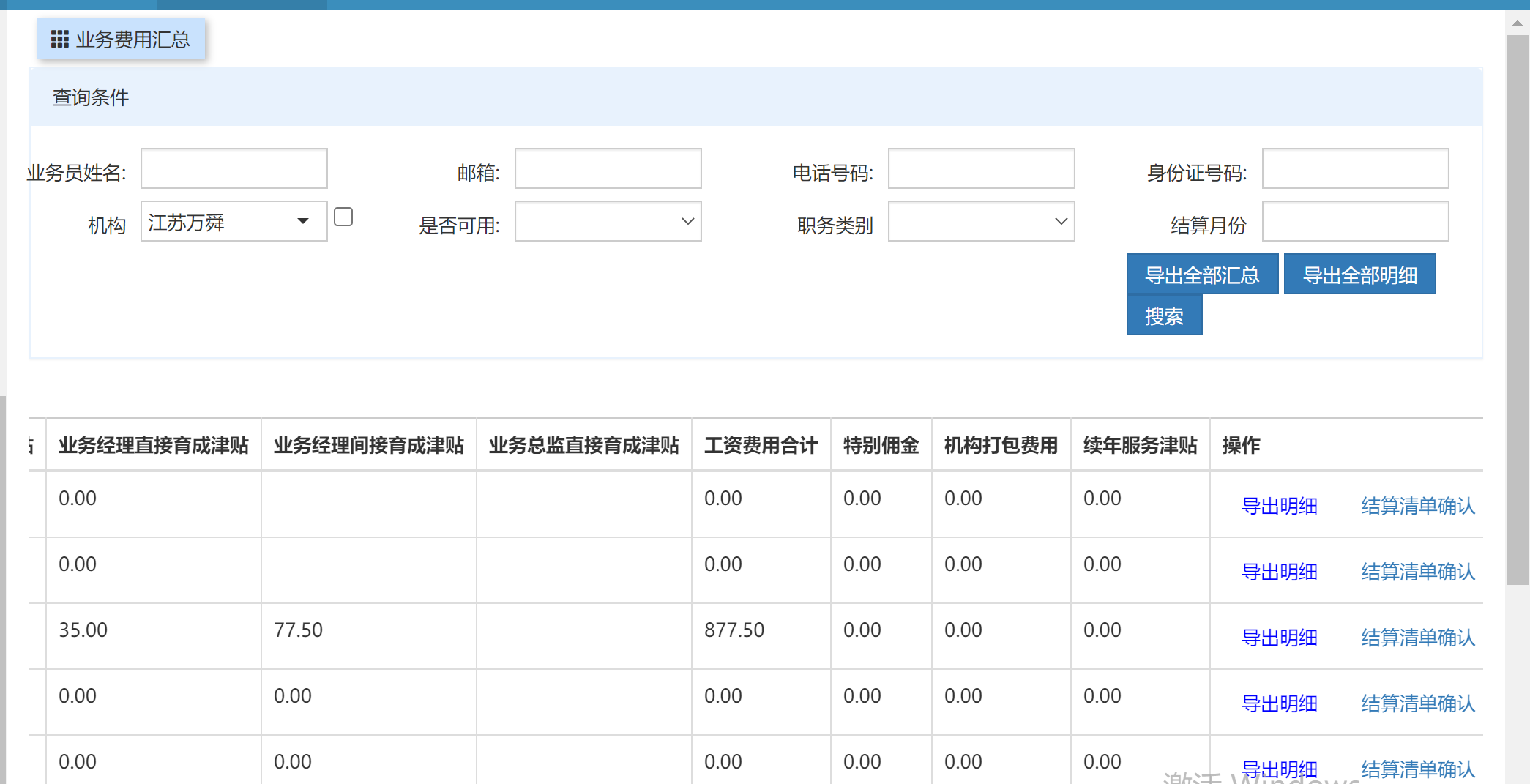 云鹰核心业务系统-业务费用汇总-结算清单确认