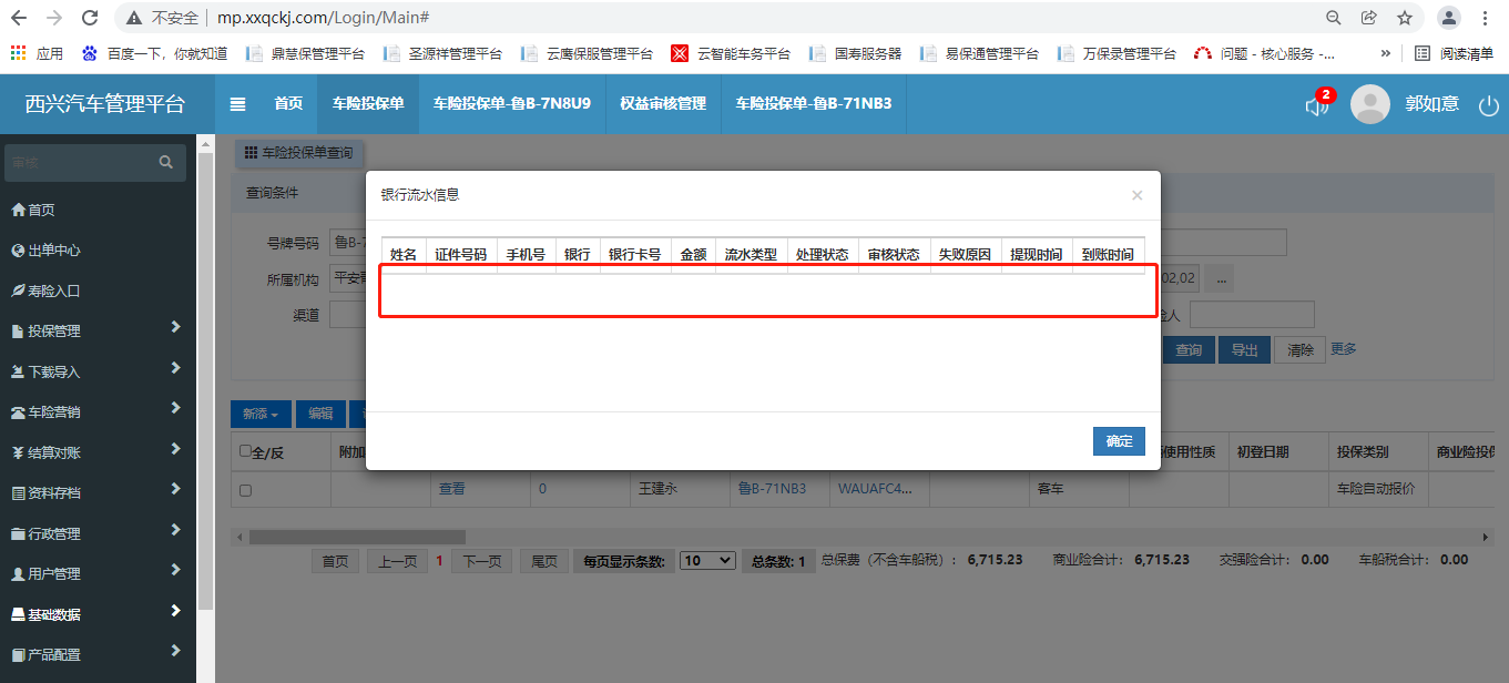 平安青岛坐席认领投保单后,权益审核管理中审核通过之后,无法生成银行流水