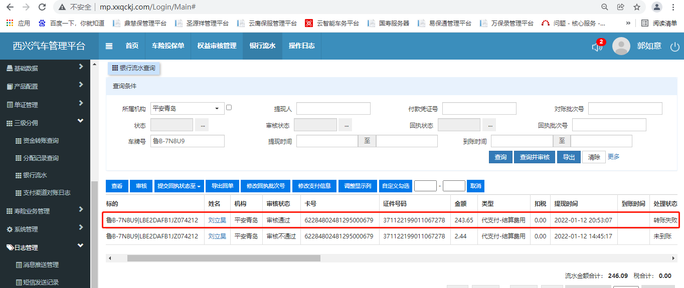 【平安青岛】转账失败流水无法进行修改重新生成流水