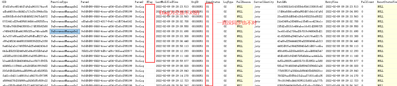 对DaDocument表的删除的同步日志未同步,详见附件。