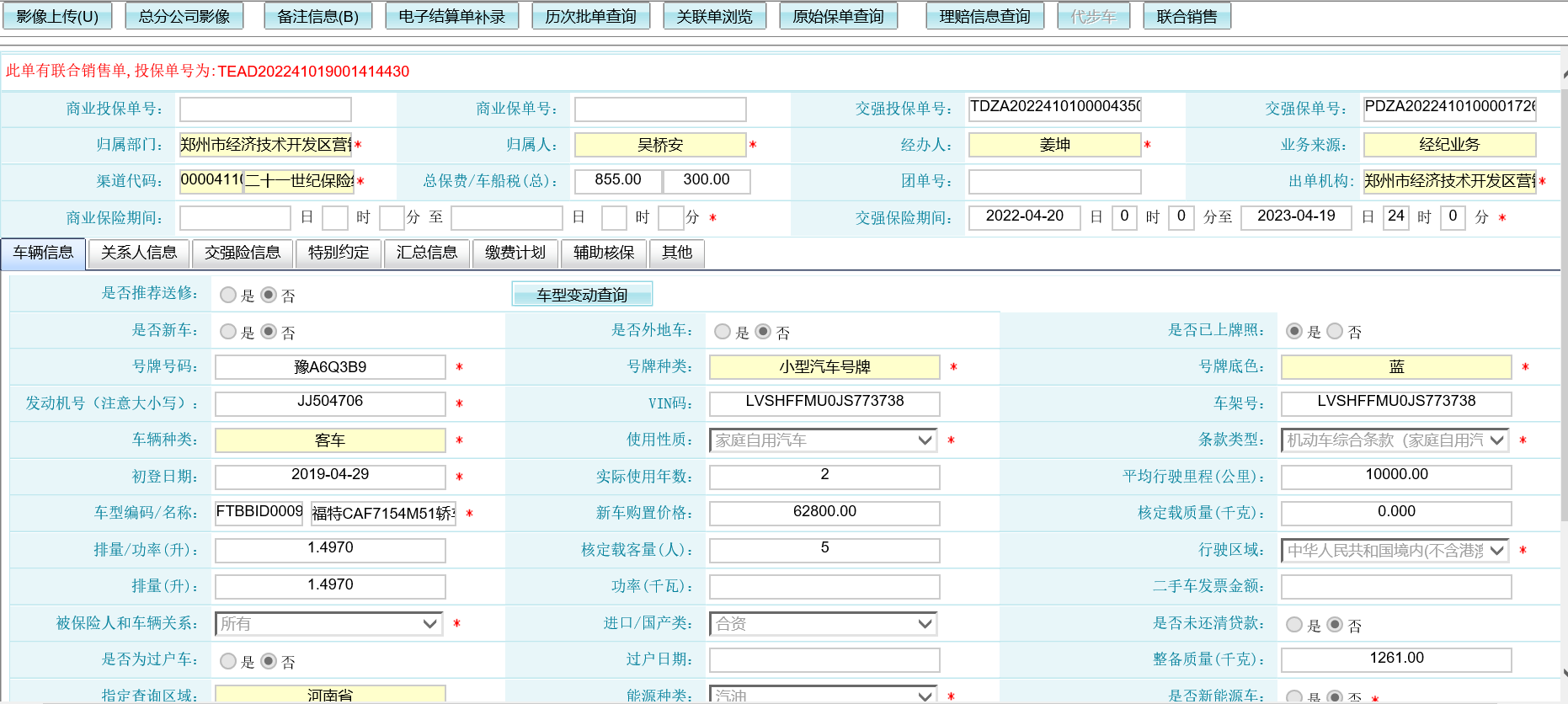 以世纪经开为例:2022年3月21日 三代系统中 豫AGL112 豫A999PN 豫A6Q3B9 豫A08JP6 豫AE63K0 都为二十一世纪保单,但在云鹰保服系统中查不到任何世纪经开的保单